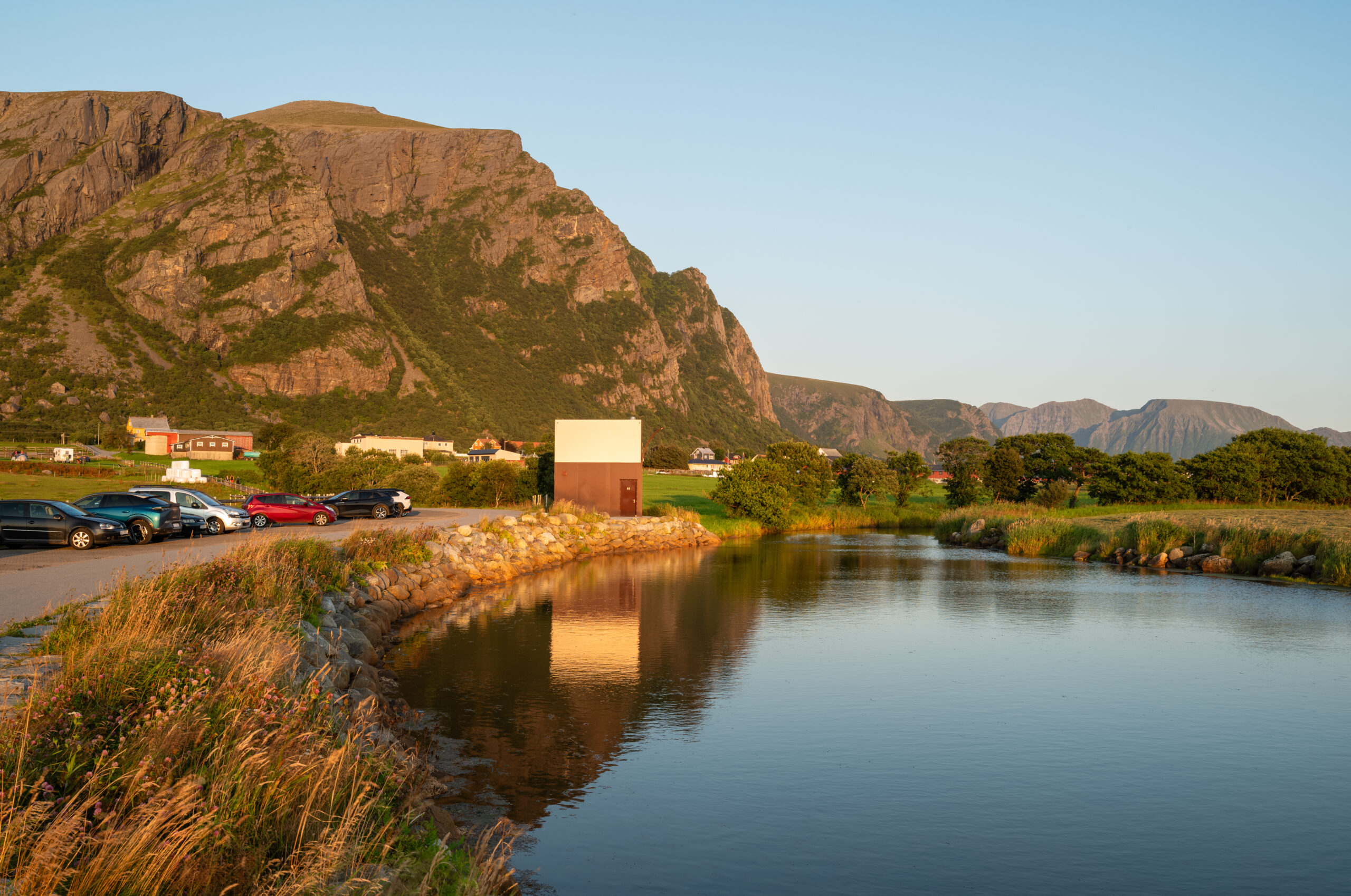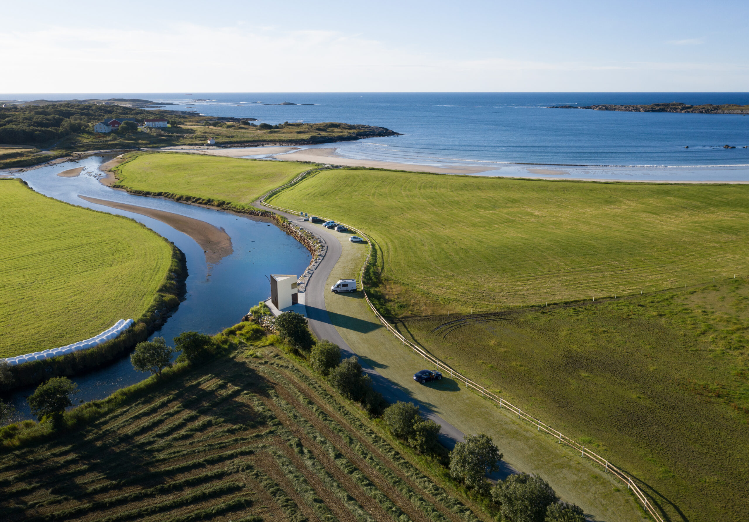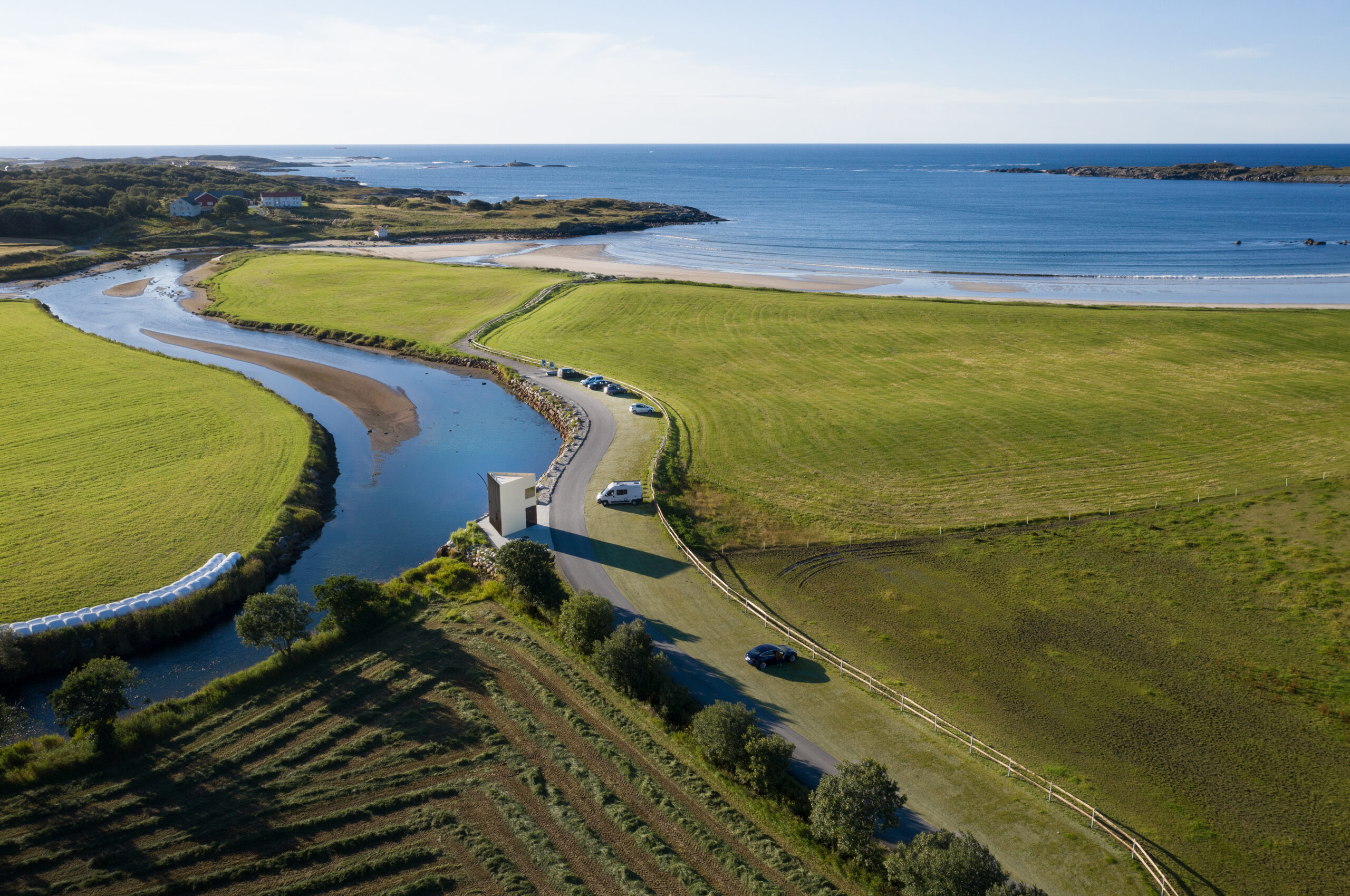 Som del av et turistveiprosjekt er parkeringsplassen og toalettbygget oppgradert med stor vekt på å bevare landskapets særpreg.