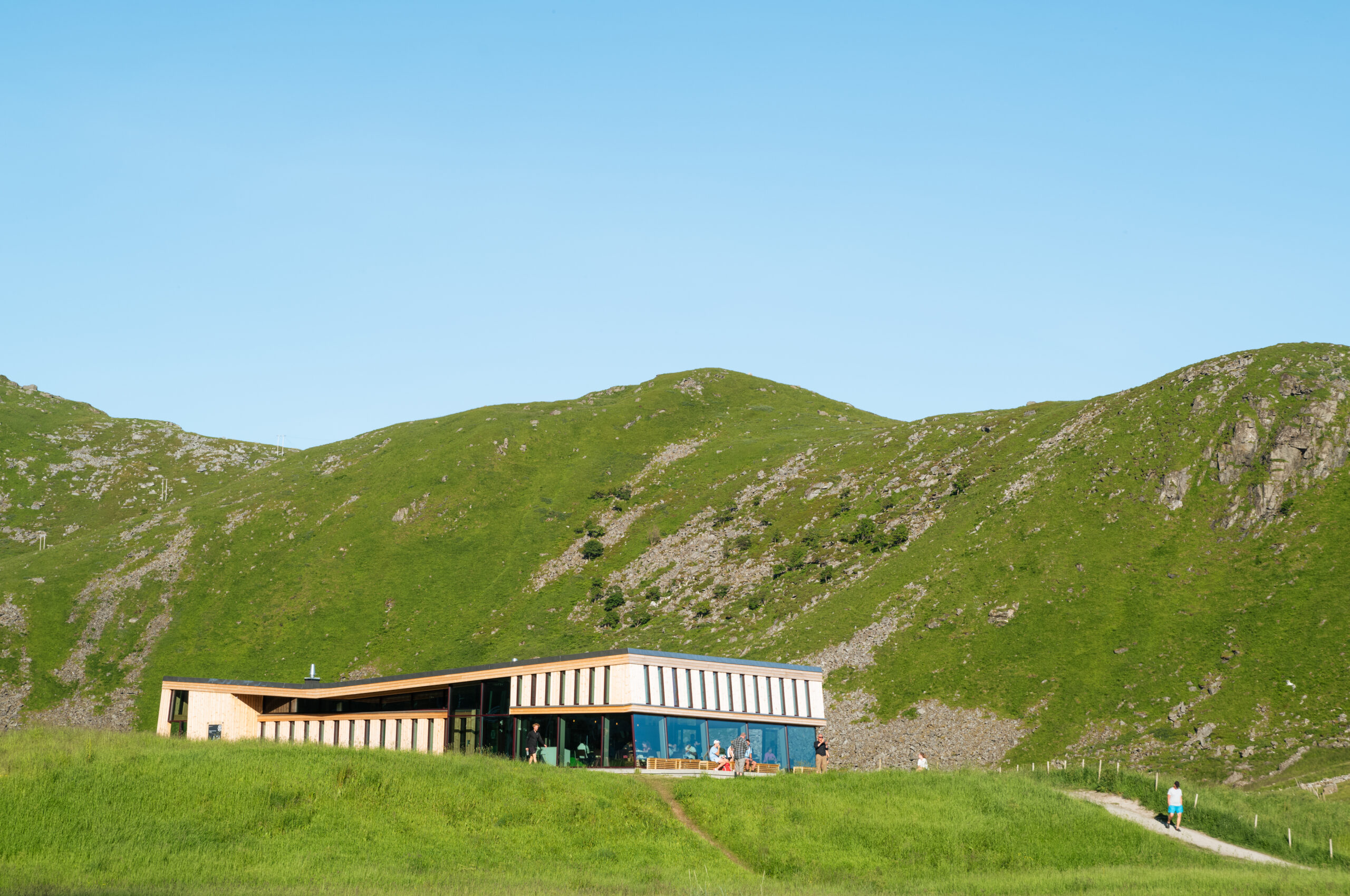 Grindaker har bistått Arne Henriksen Arkitekter med etableringen av ny rasteplass med servicebygg, parkeringsplass, opparbeidede gangveier og istandsetting av landskap.