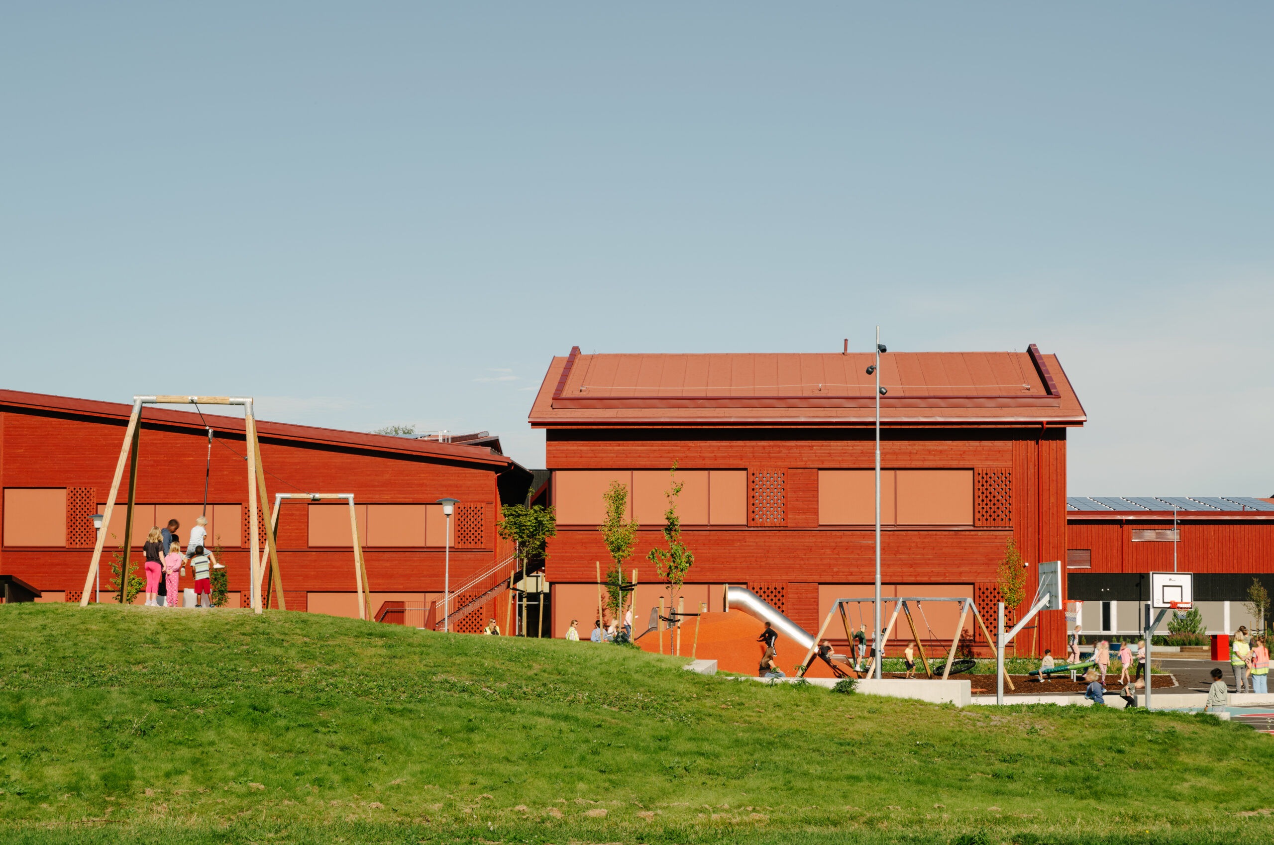 Et viktig premiss for anlegget har vært tilpasning til mangfoldet av skolens brukere, samt tilpasset bruk gjennom hele året. En aktivitetsstripe strekker seg fra parkeringen i nord og ned mot det eksisterende idrett- og friluftsområdet i sør. Her er det programmert med ulike lek- og aktivitetsfunksjoner, som parkour og streetbasket. I vest er det tilrettelagt for mer naturbasert lek, i samsvar med bevaring og styrking av eksisterende skogsområde.