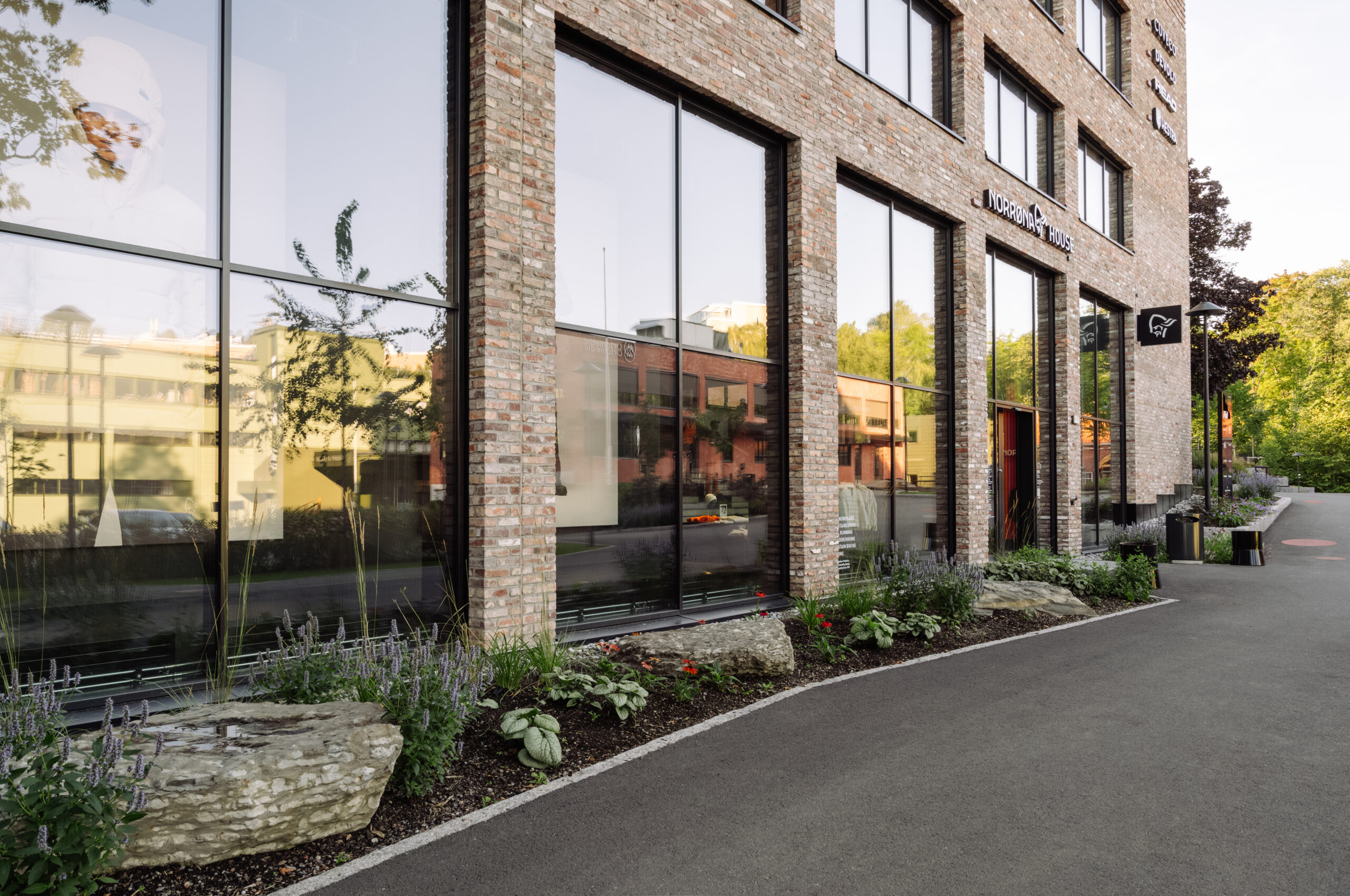 Vollsveien 13H har nylig gjennomgått en omfattende rehabilitering og står som et av de første store ombyggingsprosjektene i Lilleakerbyen. Eiendommen ligger idyllisk til langs Lysakerelva, rett nedenfor den mektige Granfossen, og består opprinnelig av flere bygninger fra det historiske Granfoss bruk. Disse er nå restaurert og oppgradert, supplert med et nybygg og tilbygg som binder helheten sammen.